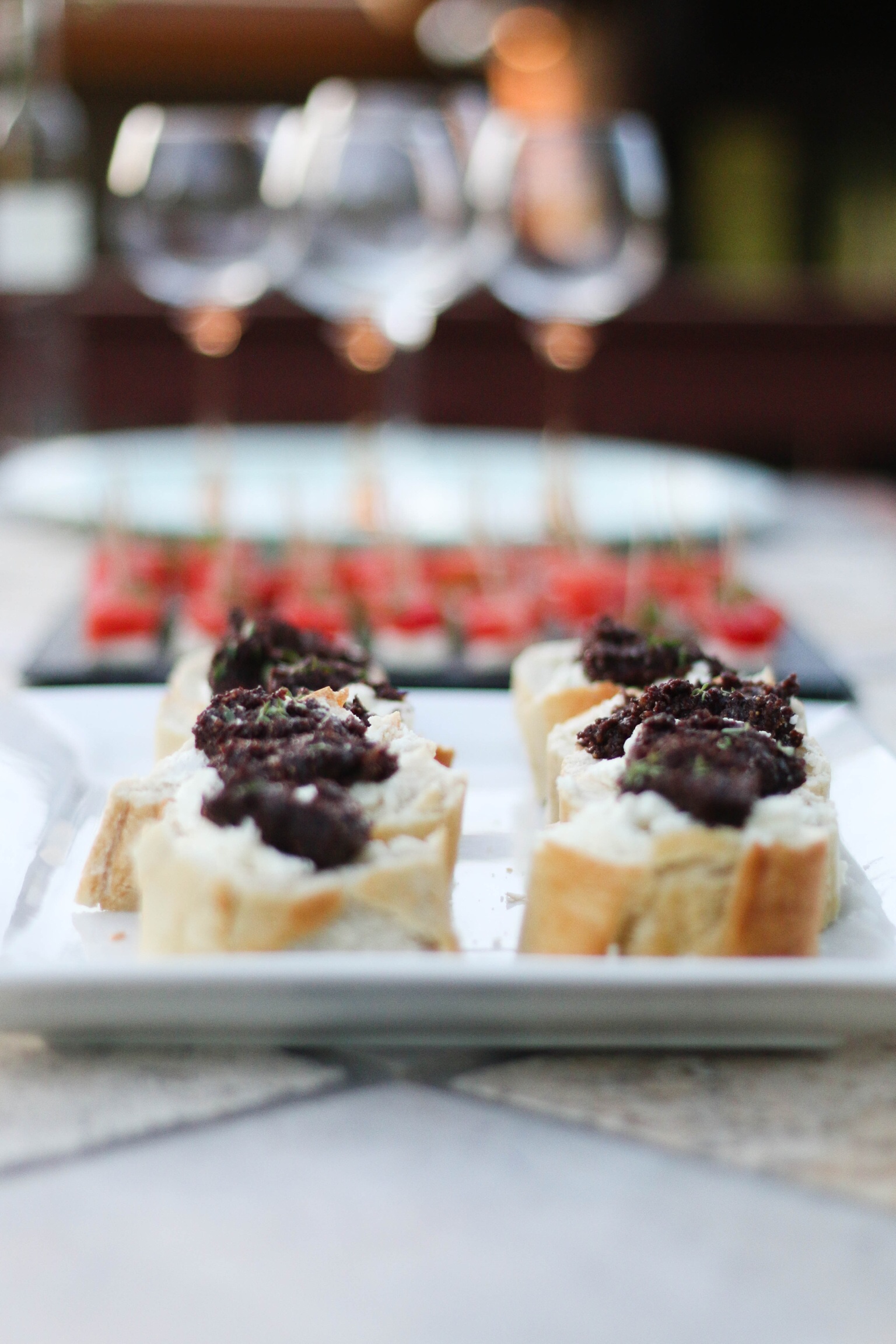 Paired with a crisp Bordeaux, these fresh appetizers hit the spot, and they were garnished all from Emily and Wade’s backyard garden!