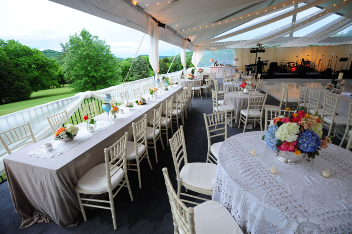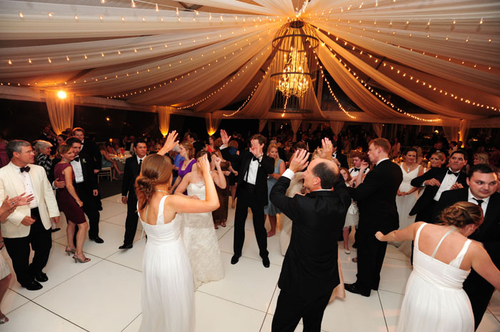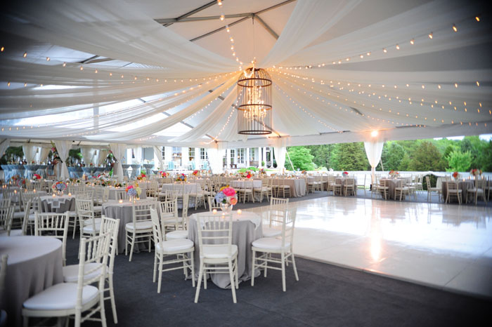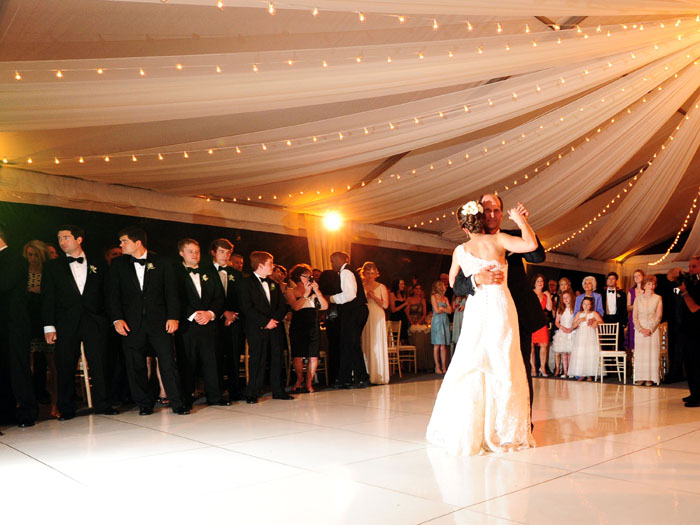 * How incredible is this gigantic checker board dance floor in b&w?!? This stage makes a statement with class. Add white market lights strung across the space and you are ready for an all-night-long dance party!