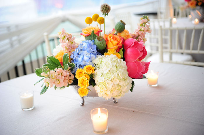 Tell us a little bit about your aesthetic- colors, inspiration, your personal style, etc…My colors were ivory, grey and aqua, but my flowers also incorporated coral, peach, pale pink, and white. I drew inspiration from what I am naturally drawn to: relaxed and elegant, the “effortless chic” look, if you will, with specific attention to heirloom and interest pieces from my family. The tables had my grandmother’s lace table runners over ikat, chevron, and toile print tablecloths. I have always trusted my mom’s decorative taste, especially since she tends more towards the sophisticated look, so I relied heavily on her input and style as well!