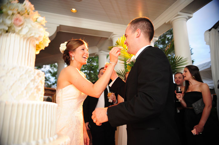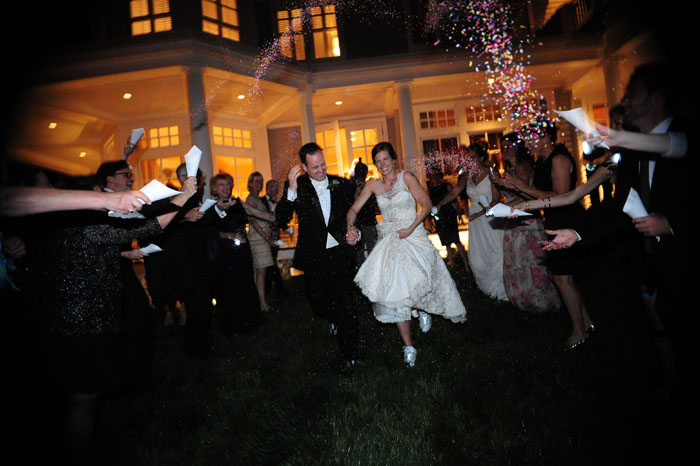 Vendors: DRESS Modern Trousseau, created and customized by Callie Tein // ACCESSORIES Bella Bridesmaid ivory ceremony shoes; NikeID AirMax90 custom reception shoes; Vintage diamond earrings and bracelet from Great-Grandmother; Vintage Belgian lace veil from Grandmother // VENUE First Presbyterian Church and Grey Gables (family home) // PHOTOGRAPHY Paul Wharton // WEDDING PLANNER Big Events Inc. Denise Sykes // PAPER Emily O. Holmes Custom Paper Lovelies, of course! // PAPER Big Events Inc. Martha Greenwood // CATERING Kristen Winston Catering Inc. // CAKE Dessert Designs // RENTALS Big Events Inc. // BRIDESMAID ATTIRE Ivory chiffon Ann Taylor Bridal dress, Madden Girl aqua pumps, Swarovski crystal pendant necklace (gift from bride) // GROOMSMEN ATTIRE Street Tuxedo traditional black tuxedo with shawl collar, cummerbund, bowtie and suspenders // MAKE-UP Renee Browning at Woo Cosmetics // HAIR Sola Salon Studios of Brentwood, Jessica Trimbell